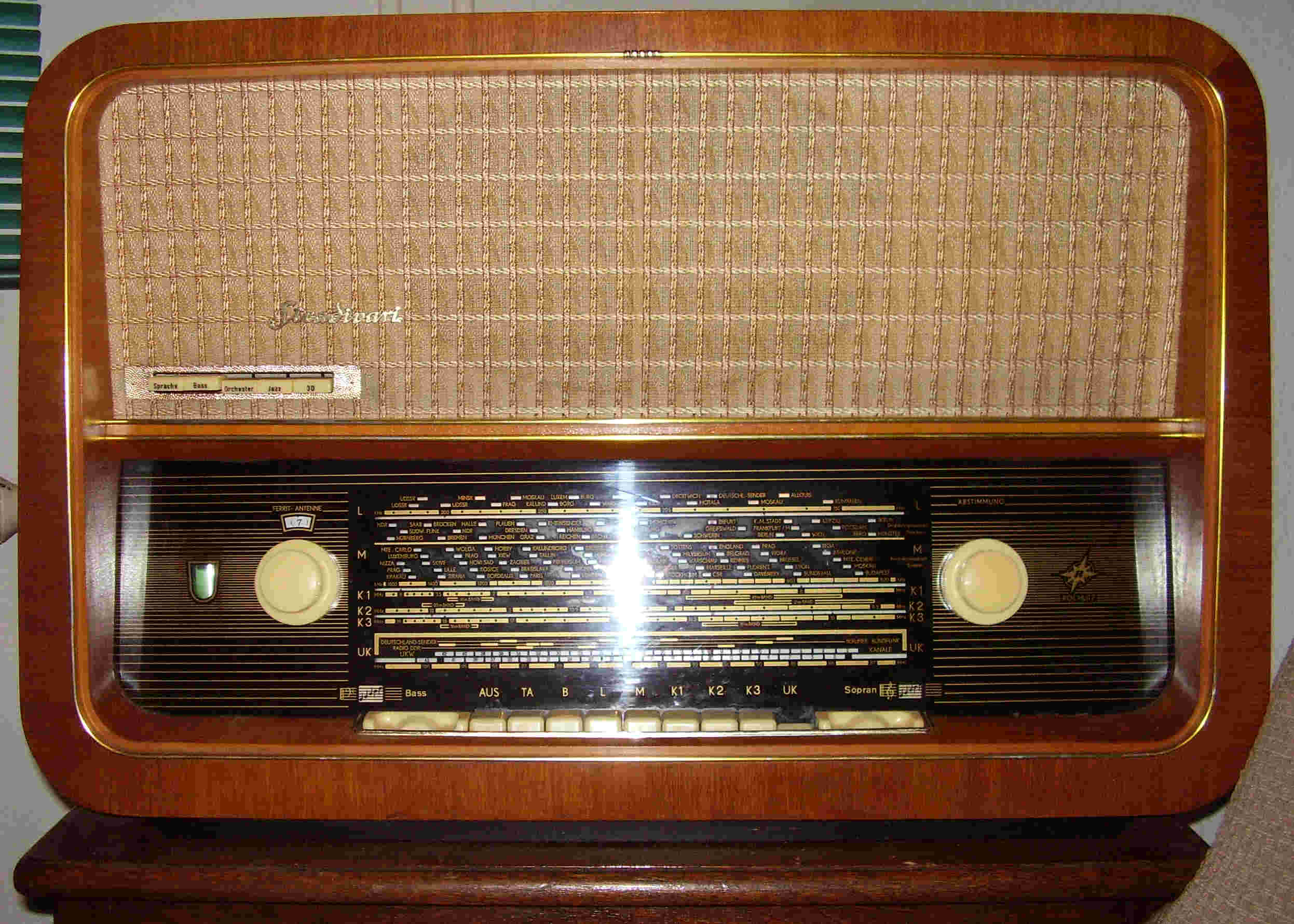 Hallo in die Runde, mein Lieblingsradio ist ein Nordmende Transita Kofferradio,wohl ca.1960 gebaut,in meinem Besitz seit Sommer68.Ich bekam es geschenkt,da der Ein/Aus Schalter am Lautstärkeregler defekt war.Ich habe damals Schalter überbrückt,in das kunstlederbezogene Sperrholzgehäuse ein Loch gebohrt und einen Schalter mit schwarzem Knebel eingebaut.(zu meiner Entschuldigung muß ich sagen,daß ich damals 10 Jahre alt war)Der Schalter sieht aber durchaus passend aus,da es auch damals schon ein älterer aus der Bastelkiste war. (Als Modellbahner hatte ich damals durchaus schon elektr.isches Grundwissen und konnte löten.Schon damals fand ich den Klang für ein kofferradio ausgesprochen gut.(Holzgehäuse,große Bautiefe mit relativ großem Lautsprecher.Das Radio hatte auch schon UKW und spielt bis heute.Fast fünfzig Jahre später bin ich ,nun ja,ich muß es zugeben,"etwas"überdurchschnittlich mit älteren Geräten,auch Tonband und Schmalfilmgeräten,ausgestattet und meine Wega Stereoanlage klingt auch besser als die Transita,trotzdem bleibt das mein Lieblingsradio.Da ich überwiegend Geräte Ende 60er/Anfang 70er betreibe ist er nicht nur mein erstes,sondern auch mein ältestes Radio, wenn man von einem selbstgebauten Detekrorradio(nach dem Werkbuch für Jungen von Rud.Wollmann)mit einstufigem Transistorver- stärker(!)mal absieht.Viele Grüße Ralf