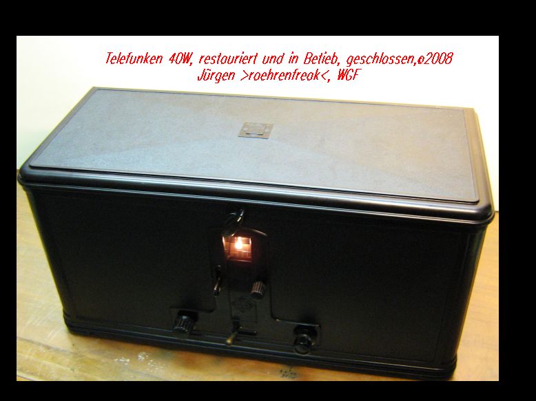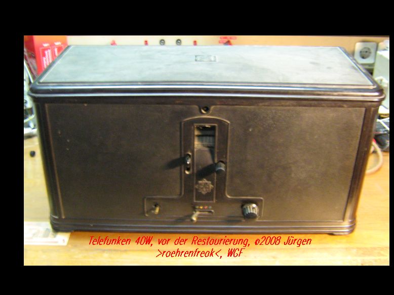 Zuerst meinen Glückwunsch zum erfolgreichen Abschluß der Wiederherstellungsarbeiten am inneren Teil des Radios. Voraussetzung für den Empfang mit solchen Geräten ist ja, daß die damals verwendete Sendetechnik in ihren grundlegenden Parametern noch heute eingesetzt wird. Bleibt nur zu hoffen, daß die Umstellung auf digitalen Sendebetrieb nicht all zu schnell erfolgt. Ein Transport von analogen AM- Rundfunksendern über Kabel, wie es beim Fernsehen praktiziert wird, ist ja sehr unwahrscheinlich. Was mich immer wieder an alten Röhren fasziniert, ist die Dichtigkeit an den Drahtdurchführungen. Wie man das mit dem damaligen Kenntnisstand geschafft hat, wird wohl ein Rätsel bleiben. Selbst in den siebziger Jahren war bei der Fertigung von Halbleiterdioden in Glasverkappung das Thema "Dichtigkeit" noch ein Problem. Bleibt mir noch, Dir bei der äoßeren Restaurierung des Gerätes einen ebenfalls befriedigenden und erfolgreichen Abschluß zu wünschen.