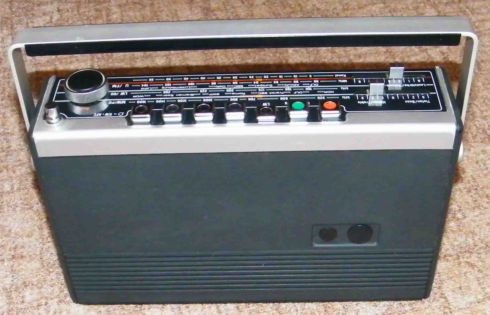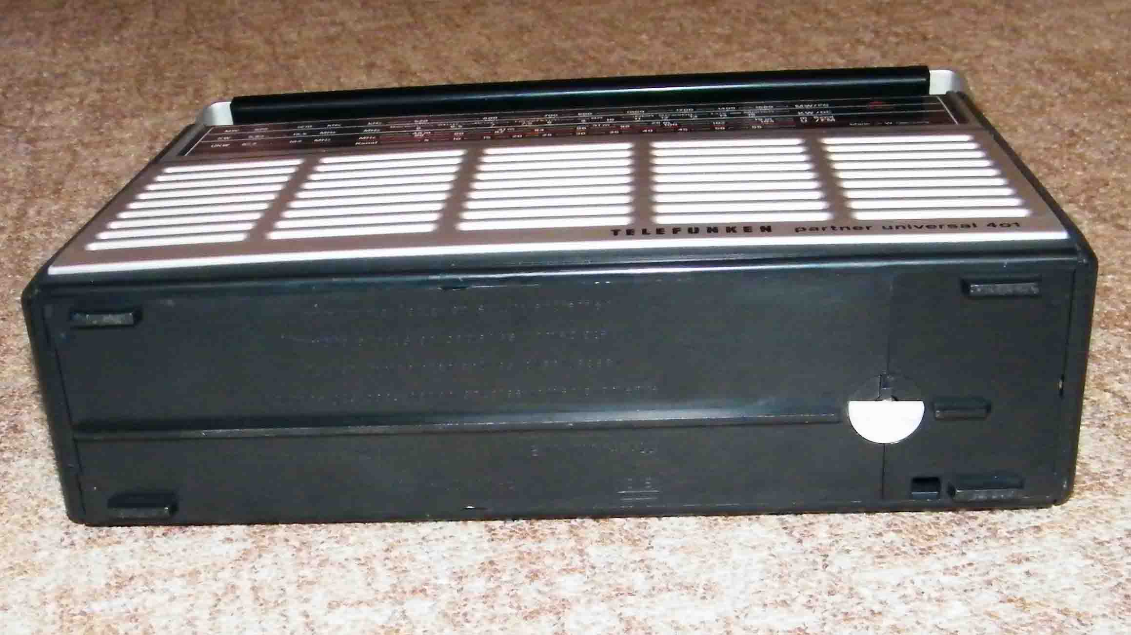 Heute hat es geklappt. Habe auf dem Flohmarkt einen "TELEFUNKEN partner universal 401" erstanden. Er ist in einem recht ordentlichen Zustand - wie die Bilder auch zeigen - ist noch ungereinigt, wie vom Markt mitgebracht. Nach dem Reinigen der Batteriekontakte und dem mehrmaligen Drücken der Bandtasten spielt er auf allen Wellen. Die Grüne Luxemburgtaste liegt im KW-Bereich 49m - die genaue Frequenz weiß ich jetzt nicht gleich. Geöffnet habe ich den noch nicht , aber da sind wohl nur die beiden Schrauben an der Seite zu lösen - oder? - habe noch nie ein Westradio geöffnet - welch Plamage -, sammle von Taschen- und Kofferradios eigentlich nur Geräte die es auch in der DDR zu kaufen gab. Aber ich hoffe doch , daß da noch TFK drin ist. Nur schade das auf der Frequenz der Grünen Taste kein Sender zu empfangen ist.