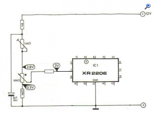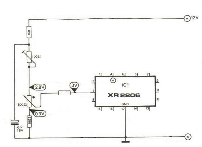 Zitat aus Elektor: "Der Strom, der von Pin7 ( am XR2206) nach Masse fließt ist direkt proportional der Ausgangsfrequenz. Ändert man diesen Strom linear, so ändert sich auch die Frequenz linear."