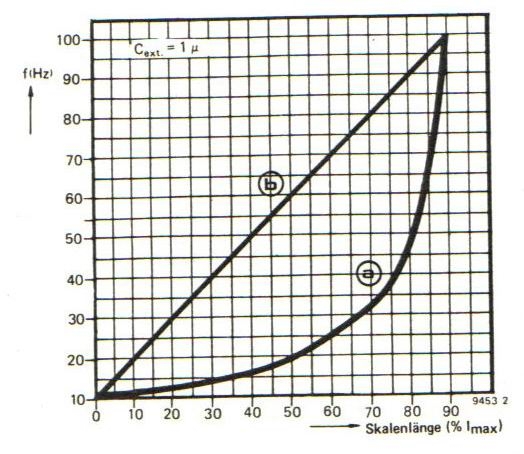 Dies funktioniert an meinem FG mit einem Voltmeter als Frequenzanzeige einwandfrei, da mit einem Profi-Frequenzzähler abgeglichen.