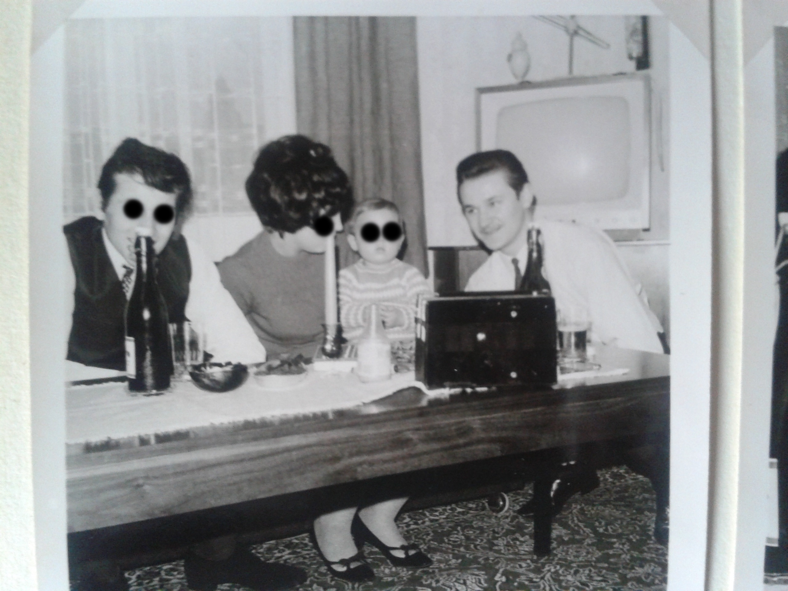 Da ich dieses Kofferradio mal als junger Mann besessen hatte, viel es mir in der Bucht auf und ich konnte es günstig kaufen. Jetzt suchte ich meine Bildergallerie aus den 60er Jahren durch und wurde fündig. Nomen est Omen: In der ersten gemeinsamen Wohnung in Offenbach (Main) im Jahr 1968, also dem Jahr in dem ich meine Schulkammeradin zur Ehefrau nahm - und sie mich zum Ehemann....(Das dauert jetzt 48 Jahre an) hatte ich das Kofferradio auf dem Tisch stehen. Bild ist zwar die Rückseite, aber eindeutig das Akkord Filou Export (U-M-L) Die Personen habe ich wegen der Persönlichkeitsrechte etwas Bearbeitet.Da meine Frau mit der Agfa Box auch umgehen konnte, bin ich auf dem Bild. (Der unretuschierte) Das Radio im Vordergrund.