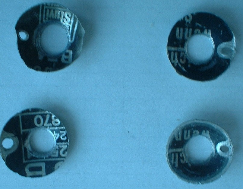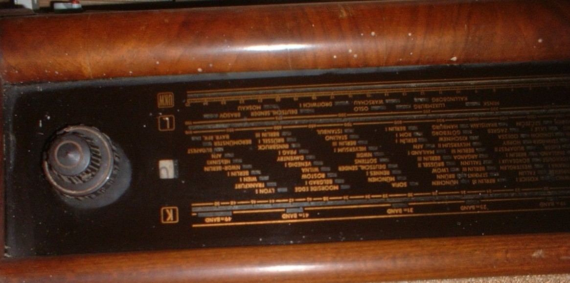 Dazu möchte ich anmerken, daß diese Schaltung relativ neu war und eher nicht zur Kombination von Stahlröhren und Allglasröhren paßt. Unüblich ist auch die Montage. Die Skalenscheibe ist nicht am Chassis montiert, sondern mit 3 Metalllaschen am Holzgehäuse. Für Maßtoleranzen sind die Löcher für die Regler waagerecht oval vergrößert. Weitere urheberrechtlich geschützte Bilder des Objektes. Die Skalenscheibe am Wellenschalter, UKW reicht von 0-25 linear geteilt. Die Unterlegscheiben der Chassisbefestigung sind Teile von Typenschildern! Die Bruchstücke der Skalenscheibe links vom Lautstärkeregler von der Rückseite aus , wo ich eine Radiobezeichnung vermutet hatte, statt dessen der Herstellervermerk-Aufdruck. Weitersuchen! MfG Florianska