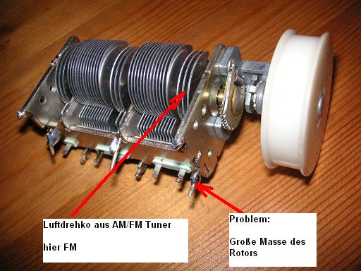 Ich hatte natürlich nicht die Originalbauteile. Als Röhre war nur die EF98 möglich und ich hatte noch einen schönen UKW- Luftdrehko, den ich einsetzen wollte. Aber mehr als ein leichtes Rauschen, war nicht zu gewinnen. Die große Masse des Rotors dämpfte mir meinen Schwingkreis derart, sodass keine Rückkopplung zustande kam. Nur einige Phantomstimmen waren zu hören.