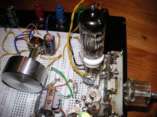 Der Schwingkreis liegt nun völlig frei. Keine Antenne und trotzdem recht guter Empfang. Das gefällt mir überhaupt nicht. Ich vermute, dass der freie, offene Aufbau auf meinem Laborbrettchen und / oder die Zuleitungen aus meinem Röhrennetzteil dafür verantwortlich sind. Damit sind aber auch die nicht gewollten Abstrahlungen weiter vorhanden.
