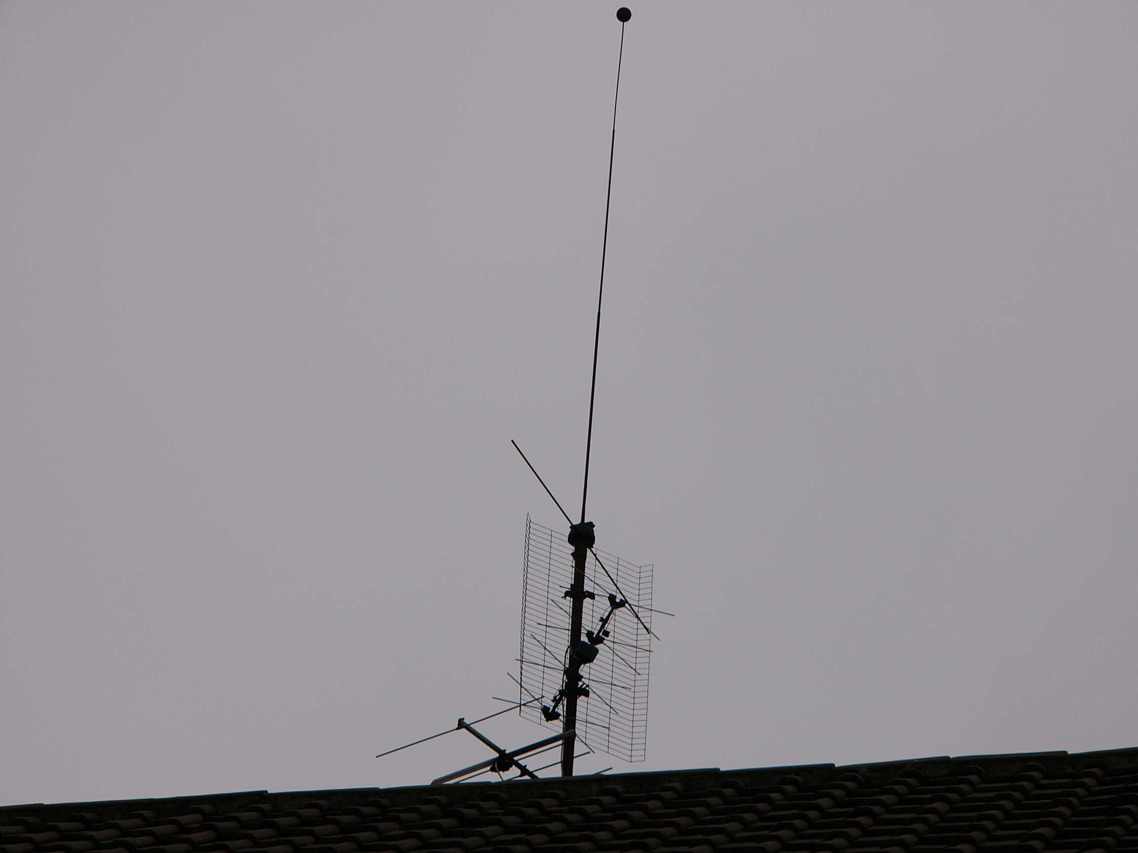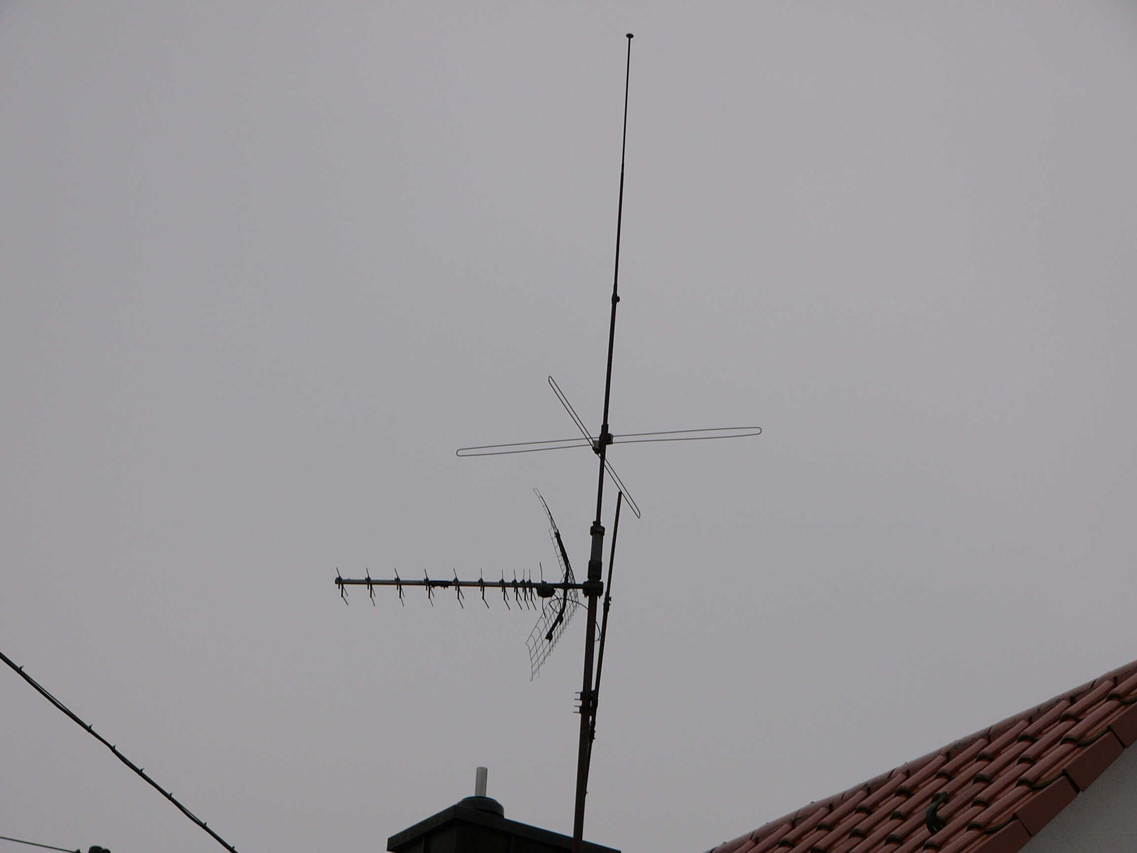 Dazu müssten die natürlich identifiziert werden. Oben Kathrein ARA 30. LMK-Rute (mit Prasselschutz) und unten eine 3-Element-UKW-Yagi. Der Dipol ist verbogen.