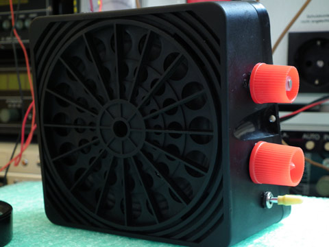 Da ich jetzt frei hatte, bin ich mit dem Germaniumradio vorangekommen. Den zusammengelöteten Haufen Teile habe ich in eine gehäusefreundlichere Form gebracht und mit in den Lautsprecher gebaut. So richtig "mini" gemäß des Themas und Funkschauartikels ist es nun allerdings nicht geworden. In der Bastelkiste fand ich noch ein Schalterpoti, so dass ich mir für den bereits eingebauten Kippschalter eine neue Aufgabe ausdenken muss. Vielleicht wird's eine Wellenbereichsumschaltung. Oder lieber eine Stromsparschaltung? Versuche haben ergeben, dass für eine sehr geringe unverzerrte Lautstärke auch 0,5mA Ruhestrom für die Endstufe ausreichen, was die Laufzeit des Akkus knapp verzehnfachen würde. Andererseits reichen 500 Betriebsstunden mit einer Akkuladung wohl auch aus.