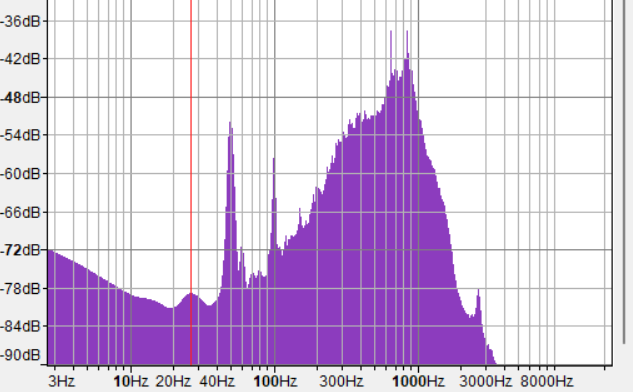 so kommt mir das auch vor. Das Spektrum hat diskrete Spitzen bei 50 Hz und 100 Hz, dann gibt es eine markante Erhebung bei 900-1000 Hz. Von einem diffusen Rauschteppich kann man wohl nicht sprechen.