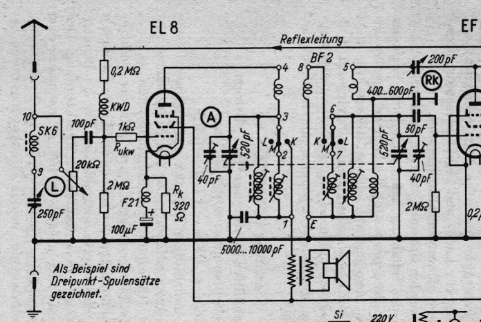 Und hier der angekündigte Schaltungsauszug des Bandfilter-Reflexaudions.