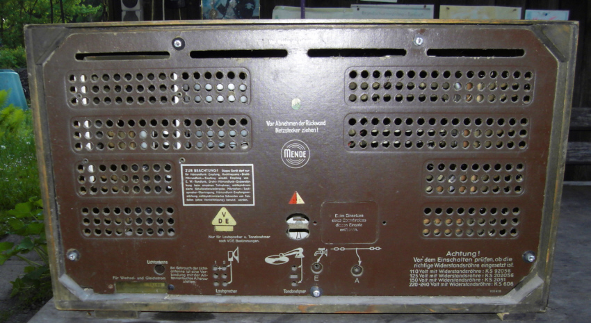 Das neue alte ist ein Vorkriegs Radio, ein Mende (Vorgänger von Nordmende). In dem Zustand Sammel würdig, bis auf das Netzkabel fehlt nichts nach Augenschein. Von einem "Versuchsbetrieb" würde ich abraten. Zumindest so lange, bis man sich die Fachkenntnisse angeeignet hat.