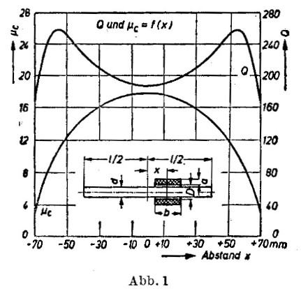 Die Spulenposition -- da sie hier explizit erwähnt ist -- zeigt nicht etwa im Zentrum des Stabes die höchste Spulengüte, sondern Maxima gegen die Ränder positioniert.