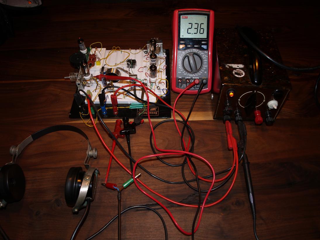 das Laborbrett ist nun wieder aufgebaut und es ist wirklich kein Pfeifton / Pilotton zu erkennen. Am Empfänger hängt wieder der dreistufige NF- Röhrenverstärker für lauten Lautsprecherempfang. Morgen versuche ich, ohne die Urheberechte (Musik Dudelfunk) zu verletzen, mal eine Seh- und Hörprobe für euch aufzunehmen.
