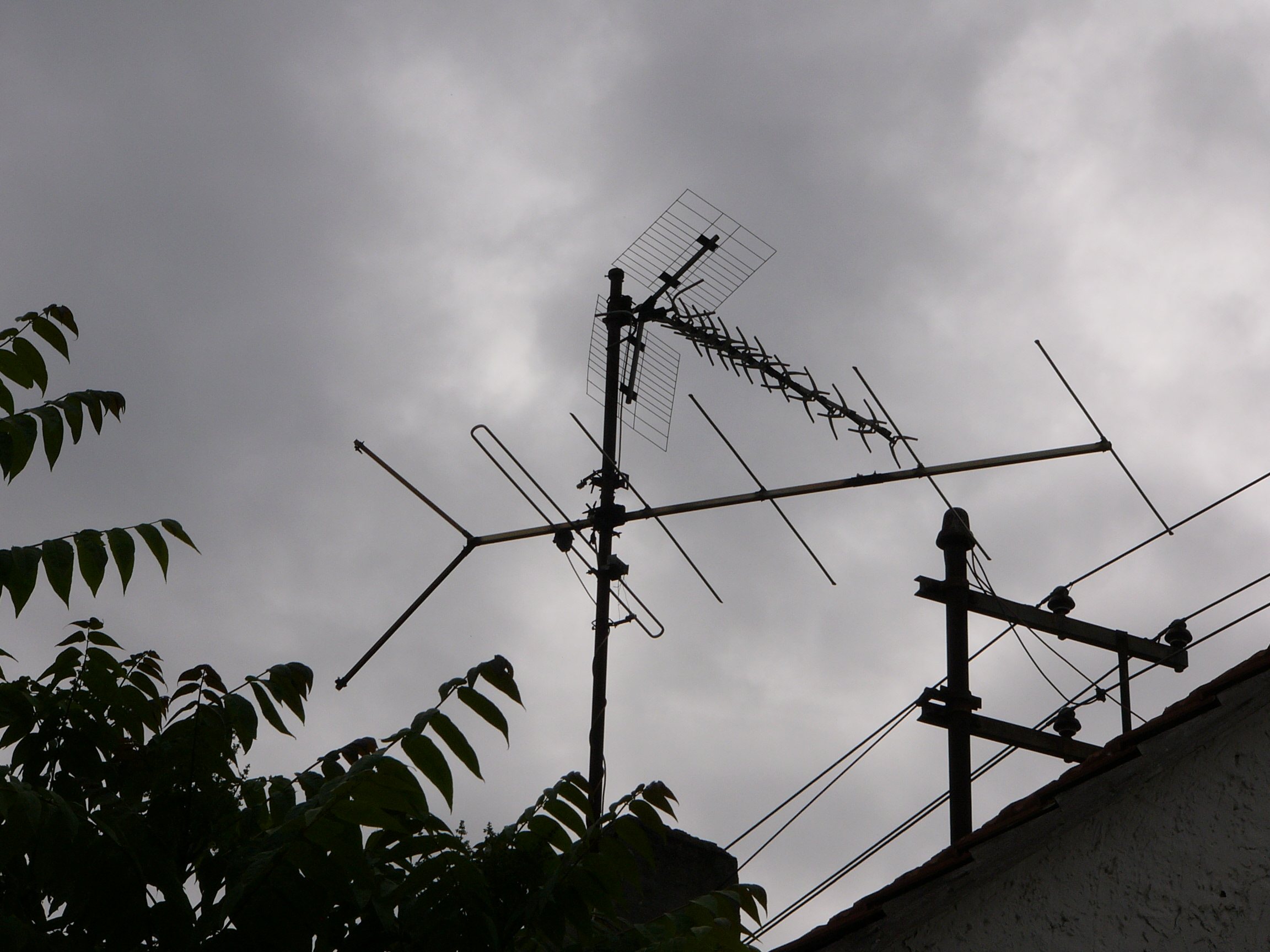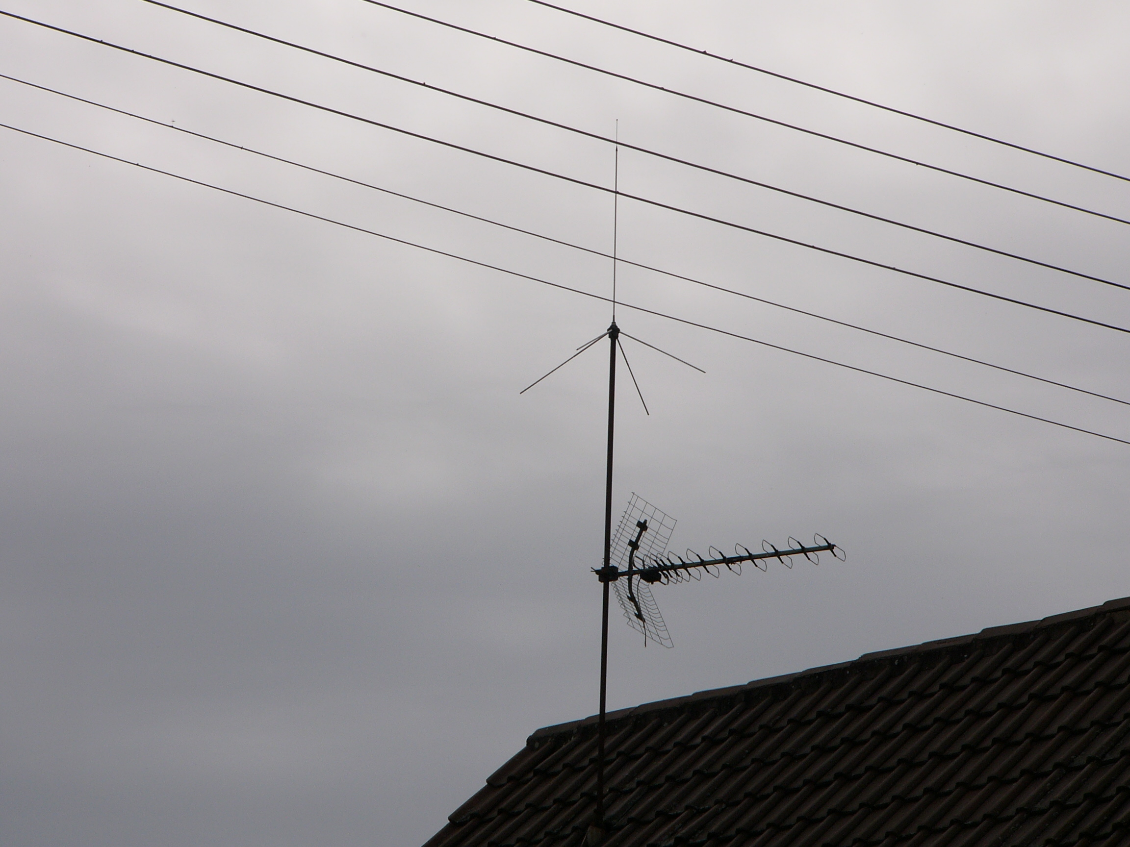 Beim letzten Foto scheint mir das oben eine vertikal polarisierte Groundplane mit /4 Stab und vier Radials als Gegengewicht zu sein, wird eigentlich eher als Sendeantenne verwendet. Ungewöhnliche Kombination mit einer TV-Yagi.