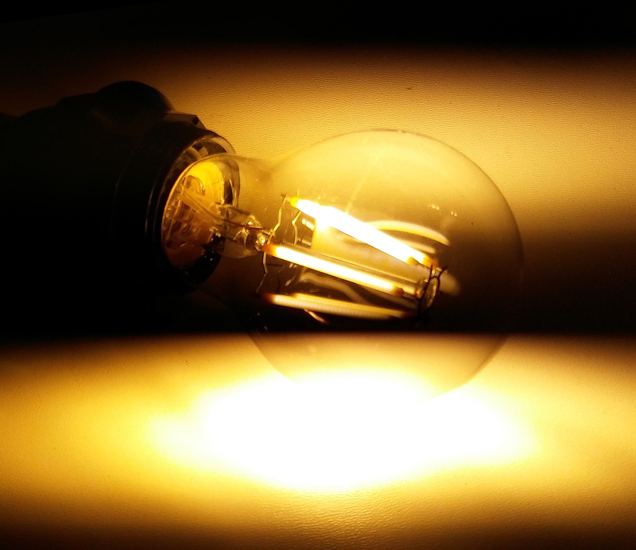 normalerweise lasse ich von LED Lampen die Finger. Nachdem aber in der Amateurfunkzeitschrift 09/2017 behauptet wurde, dass die LED-Filament-Lampen keine Störungen produzieren, habe ich mir ein paar gekauft und kann diese Feststellung bestätigen. Diese Lampen brauchen kein Vorschaltgerät bzw. Wandler. Obwohl ich kein Flackern sehen kann, ergibt sich bei schnellen Bewegungen ein Stroposkopeffekt und Handy-Aufnahmen gelingen auch nicht. Ob mich das Licht auf lange Sicht "kirre" macht, bleibt auch abzuwarten. Die Lampen gibt es in 2W-Abstufungen zwischen 2 und 8 Watt. Die 6 Watt Lampe hat etwa die Leuchtkraft einer 60W Glühlampe. Die Farbtemperatur um 3000 Grad Kelvin ist ok und "warm". Die eine Hälfte der 1W LEDs ist parallel geschaltet und mit der anderen Hälfte in Serie.