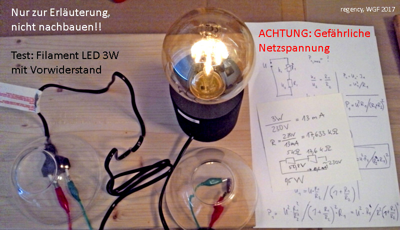 Warum also nicht einfach den ohmschen Widerstand eines Potentiometers als Vorwiderstand zur Lampe nutzen? Welche Leistung und welchen Widerstand müsste das Potentiometer dann haben?