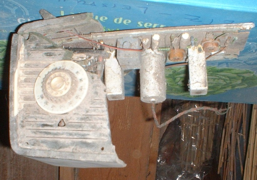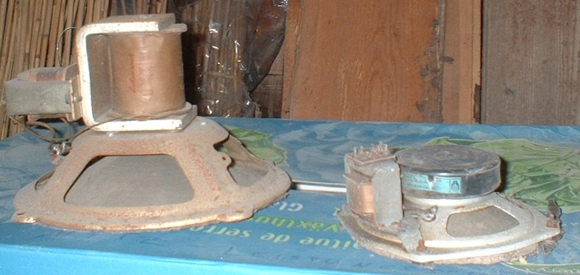 Der kleine zerstörte Kerl auf dem Foto ist der Kleinsuper "Bobby", hergestellt vom VEB Stern Radio Sonneberg. Der Lautsprecher rechts im zweiten Bild müßte auch zu dem Bobby, einem Kleinsuper mit nur einem Mittelwellenbereich, gehören. Bobby 64/58GW, Baujahr 1958. Die Schaltung basiert auf der des Kleinsupers "Minorette" aus dem Funkwerk Dresden. Röhren: UCH81, UBF80, UCL81.