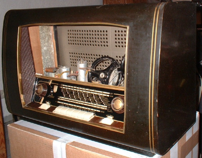 Hallo, einen schönen winterlichen guten Morgen, ich hatte ein neues Thema mit diesem Gerät im Forum Radios Reparaturen gestartet. Dabei brauchte ich Hilfe wegen der fehlenden Schallwand in diesem als 3D bezeichneten Gerät. Mittlerweile habe ich die einzige technische Unterlage, den Schaltplan. darin weist sich dieser als gültig für mehrere Geräte aus (Kaiser-Walzer 54, W1145/3D). Dabei ist vor allem die LS-Bestückung sehr merkwürdig und paßt nicht zu den Geräten (so vorbildlich wie Nordmende-Schaltpläne sind andere eben nicht!). Es sind drei LS mit jeweils verschiedener Ansteuerung dargestellt, einer direkt am AT, vermutlich TT, einer über den der Anodenspannung der Endröhre mit Vorspannung von deren Schirmgitter, vermutlich Kondensator-HT; und der letzte über einen 50mikrofarad!! Elko vom heißen Ende des AT-Ausgangs zur Kathode der Endröhre. Wie sollte ich letzteren LS einordnen? Der 3D sound wird im W1145/3D mit 3 LS realisiert, davon sind 2 symmetrisch neben dem zentralen TT montiert. Dazu passen aber diese unsymmetrisch angesteuerten LS nicht.