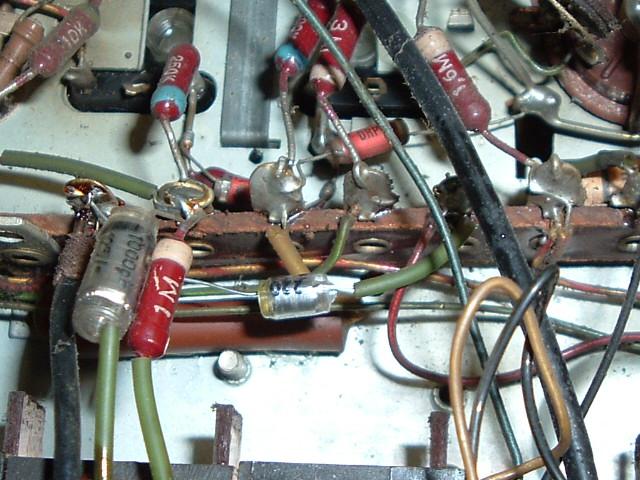 Bei der Reparatur eines Graetz Sinfonia 4R/221 ist mir die Leitung an der Anode des steilen Triodensystems der EM34 aufgefallen. Im Schaltbild erkennt man, dass sie über 20pF mit dem NF-Ausgang des Ratiodetektors verbunden ist. Ich denke mal das soll mit dem 100K Widerstand einen Tiefpass zur Rauschunterdrückung bei schwach einfallenden FM Sendern sein. Hat man sich da um eine Zehnerpotenz vertan? Mit 220pF funktioniert das richtig gut.