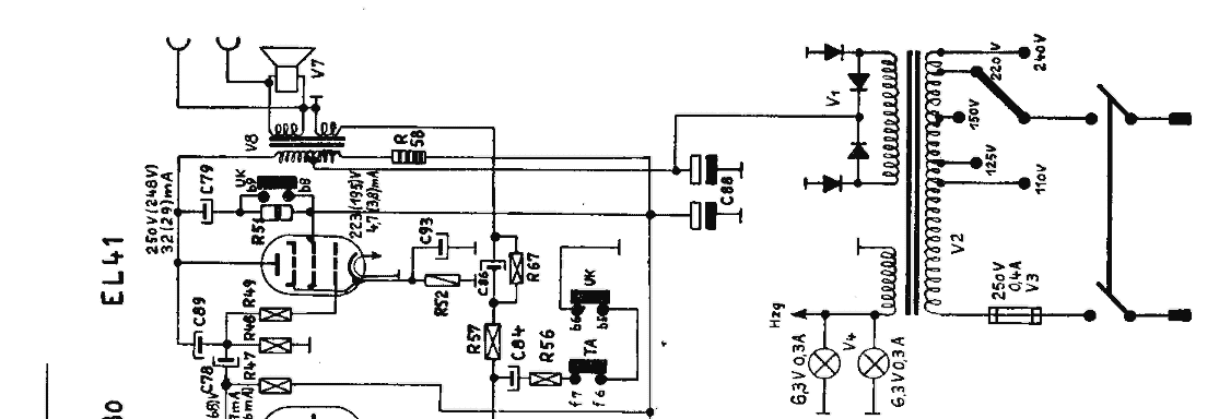 Dein Gerät ist etwa Baujahr 1953. Bevor Du an den Ersatz des Selengleichrichters denkst, messe bitte die Spannung am ersten Elko (Ladeelko). Diese sollte bei etwa 260 Volt liegen. Entsprechend spannungsfest muß auch der Gleichrichter sein. Es bieten sich spannungsfeste Dioden (1N4007) als Ersatz an. Damit bist Du auf der sicheren Seite. Auch beim Ersatz der Elkos ist auf ihre Spannungsfestigkeit zu achten, weil die Anodenspannung höher ist, wenn die Röhren noch nicht aufgeheizt sind.