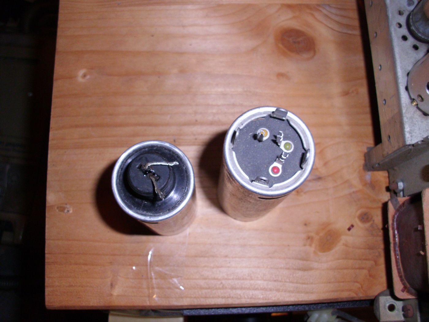 Ich hab mir heut Nachmitteg von einem Bekannten der Haushaltsauflöser ist ein kleines Nordmende mitgebracht. Das Radio lief ab und an bei ihm in der Halle, wobei allerdings nur ein Sender zu bekommen war weil sich nichts mehr einstellen ließ. Der Fehler war schnell mit etwas Fett auf der Führung des Skalenzeigers behoben weil sich da etwas Rost angesetzt hatte. Es lief dann etwa eine halbe bis eine Stunde Problemlos und dann war's bei mir in der Wohnung duster weil der FI ausgelöst hatte. Ich hab dann festgestellt das der Kondensator vom Netzteil sehr heiß war. Nachdem ich erst mal das innere des Radios mit Druckluft von Staub befreit hatte hab ich die Sicherung ersetzt und nochmal eingeschaltet. Der Kondensator vibrierte deutlich und nach etwa einer Minute war die Sicherung wieder durch. Die nächste Sicherung war sofort nach dem Einschalten durch. Sehe ich das jetzt richtig das der Kondensator hin ist?