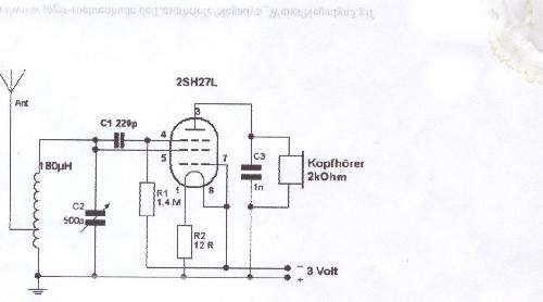 Hallo zusammen, ich habe mich an einer einfachen Negadyn Schaltung mit einer russischen 2SH27L versucht. Der Knüller hierbei ist, dass man mit minimalen Spannungen auskommt und erstaunliche Erfahrungen macht. Wenn man die Schaltung wie vorgesehen mit 3 V betreibt, ist die Lautstärke sehr leise, eigentlich kaum wahrnehmbar. Erhöht man die Heizung von 2,2 auf 3 Volt und mehr, wird das Ergebnis sehr gut; alle bei mir normalerweise empfangbare Stationen mit guter Lautstärke. Ich staune nur, dass die Röhre das mitmacht. Deshalb habe ich das auch nur kurzzeitig betrieben. Lässt man die Heizspannung auf normal und erhöht die Anodenspannung bewirkt das keinerlei Änderung der Situation. Es hängt demnach alles nur von der Emmission der direkt geheizten Kathode ab. Ich werde jetzt versuchen das Ausgangssignal mit einem einfachen IC Verstärker aufzupeppen und die Sache mit 9 V zu betreiben. Mal sehen was draus wird.