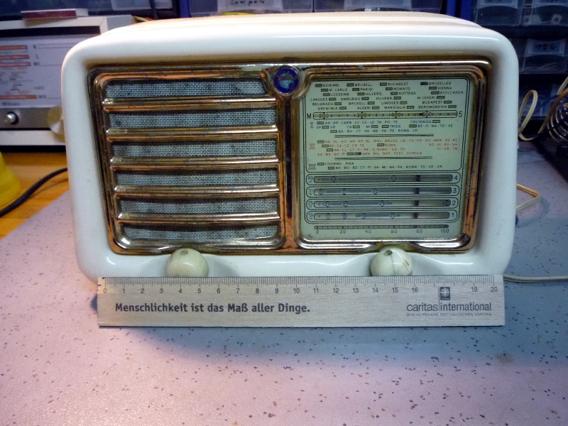 Jetzt beginnt das Projekt " Geloso ", ein italienisches Mini Radio welches mir in einem schlechten Zustand zuflogen ist. Es ist ein G 303 B Ricevitori Super aus der Serie Anie, ein typisches Nachttisch- oder Küchenradio mit gerade mal 20 cm Breite. Übrigens Geloso bedeutet übersetzt Eifersucht, ist aber der Name eines ital. Ingenieurs, welcher die Fa. gegründet hat.