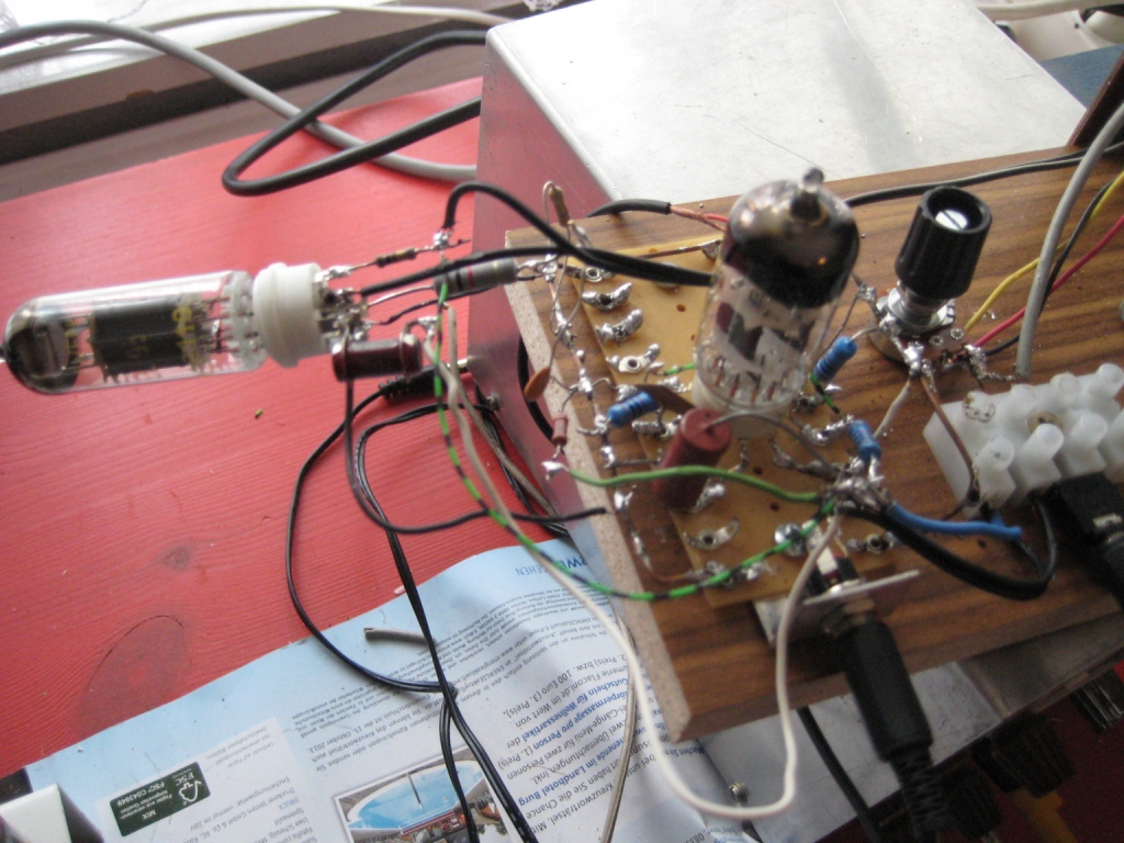 Die komplette Schaltung vom Audion ist bei Dir im Postfach. Es geht natürlich auch mit alten Röhren, nur die sind manchmal sehr teuer und die Fassungen sind auch etwas teurer.