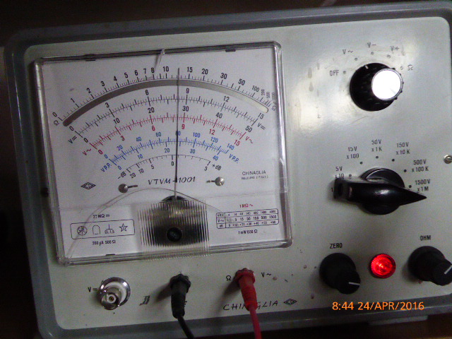 Nach dem zerlegen, stellt sich nicht viel Materiel heraus. Eine Spule und der Anschaltknopf. Mit dem Röhrenvoltmeter nochmals Gleichspannung gemesen, sehr wenig fast nichts. Bei Wechselspannung s. Bilder.... Wahlbereichsschalter ~= 1500 Volt
