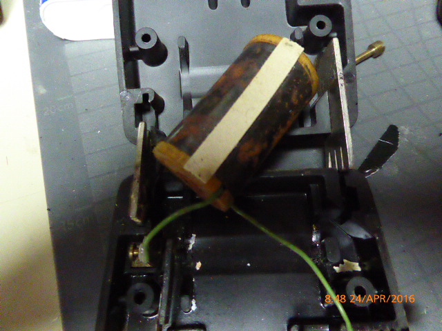 Vom Flohmarkt mitgenommen, da es ein schönes Gehäuse aus Bakelit hat. Zuhause aufgeschraubt und eine alte 4,5 Volt Batterie herausgeholt.