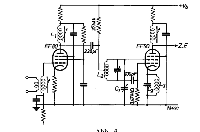 So etwas meinte ich. Gab es auch ohne Vorstufe mit EF 42. Es ist dort ein HF und Mischteil eines FE Empfängers BD I gezeigt aber für UKW BD II gab es das auch.