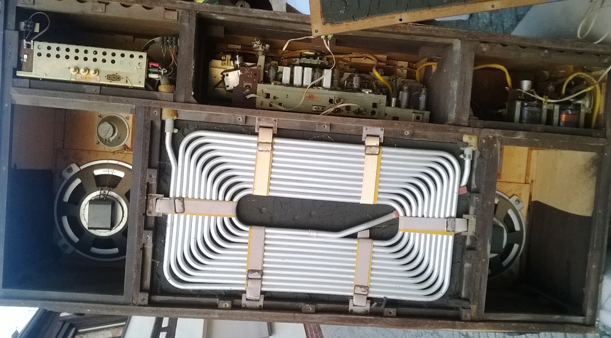 Genau so ist diese Blaupunkt Truhe aufgebaut. Zusätzlich hat sie noch eine ungewöhnliche Hallvorrichtung. Bei Saba, Grundig, Nordmende, Imperial und Emud waren die Hallspiralen von Hammond mit Zusatzverstärker verbaut. Blaupunkt hat eine Luftsäule verwendet. In diesem Fall 16m. Gibt es diese Lösung noch von anderen Geräten?