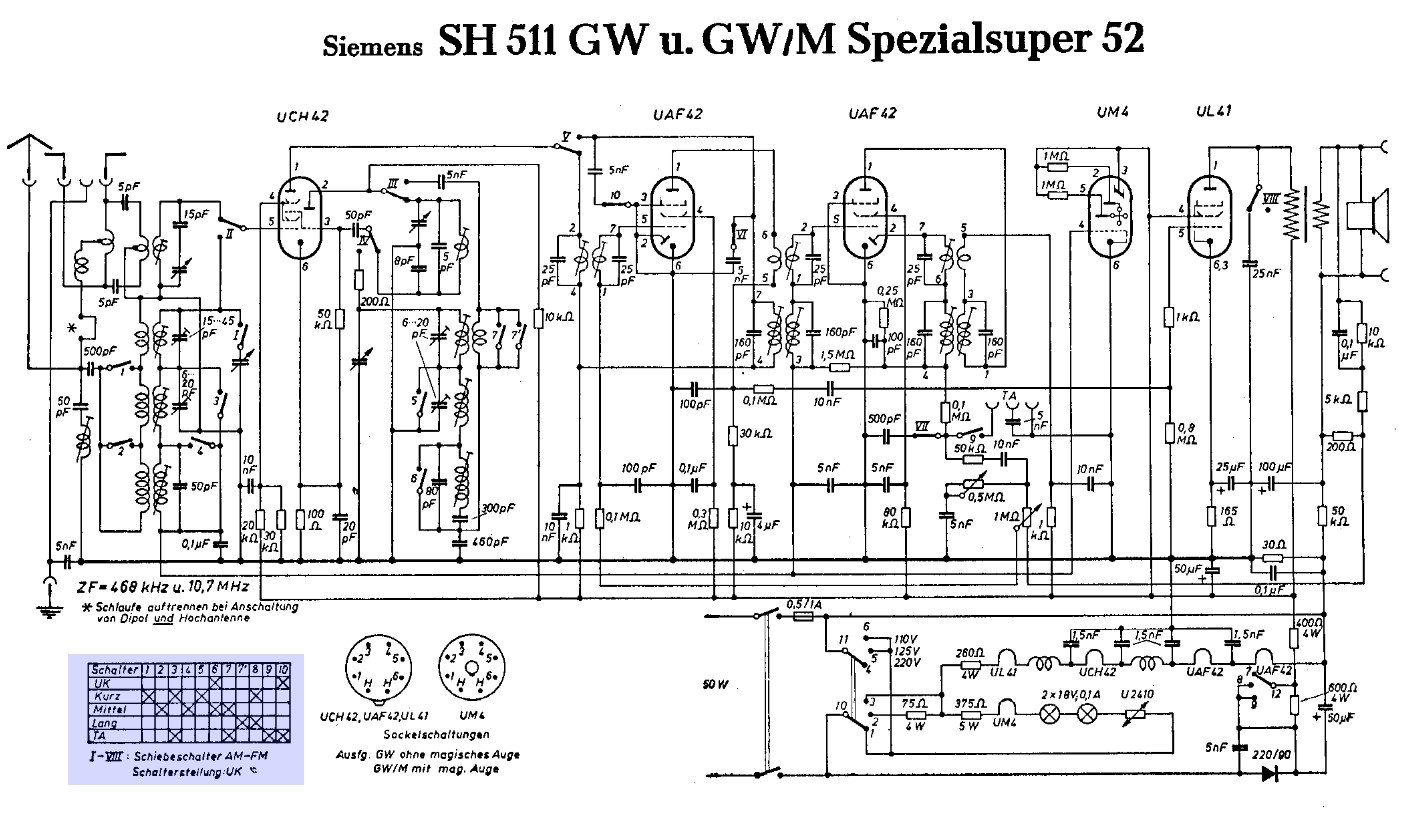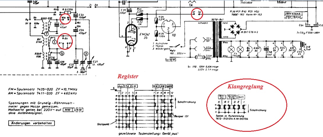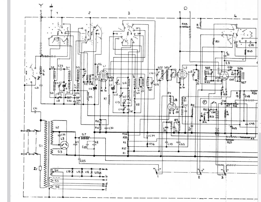 ich kenne das Problem ebenfalls, und zwar auch von einem Philips, dem BF634. Glücklicherweise habe ich von dem das ganze Service-Manual (zwar französisch, aber immerhin), und da sind die relevanten Teilschaltungen für die verschiedenen Wellenbereiche einzeln mit den korrekten Schalterstellungen gezeichnet, so dass man damit den Schaltplan 'dekodieren' kann. Über den Sinn dieser Darstellung, die weder logisch noch übersichtlich ist, kann man streiten... Andere Hersteller zeigen, dass es auch anders geht: Beim Albis und den alten Biennophone (und noch weiteren Marken) sind im Schaltplan die einzelnen Schalter dort gezeichnet, wo sie hingehören, und dann gibt es noch eine Tabelle, wo drinsteht, welche Schalter bei welcher Stellung des Wellenschalters geschlossen sind.
