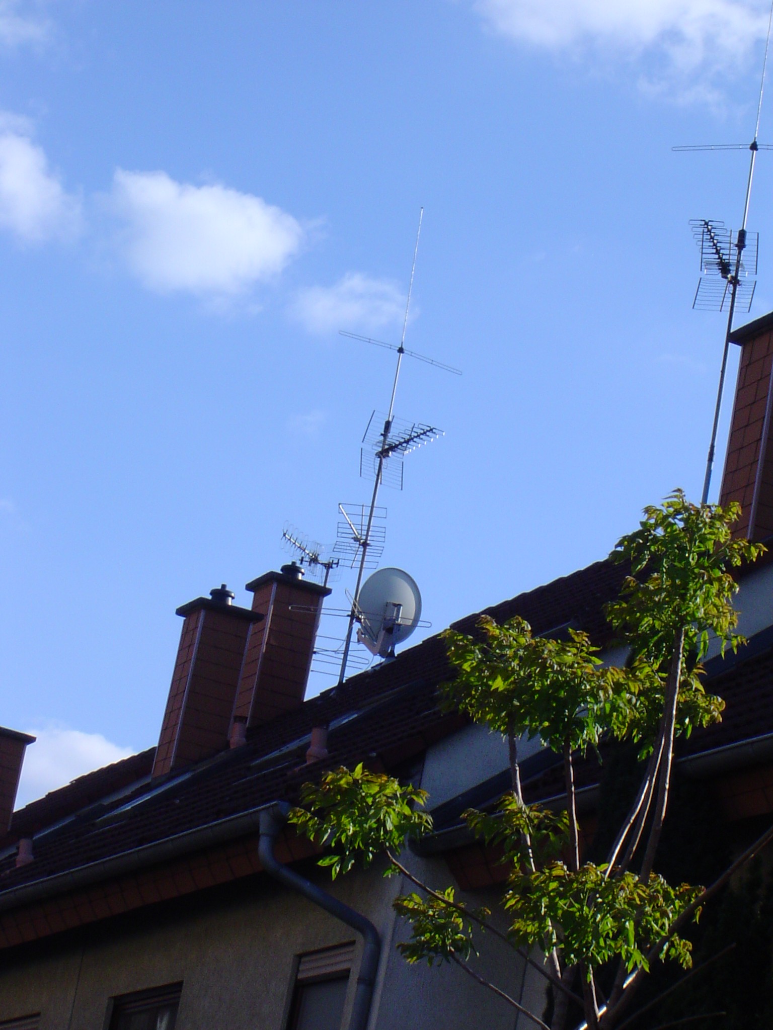 Oben VHF Richtung HD, da wurde gerichtet nach Osten vertikal ARD ausgestrahlt. Ebenfalls auf UHF. Warum man dann noch ne Antenne montiert hat? Unten ggf. Fuba?, Richtung HD.