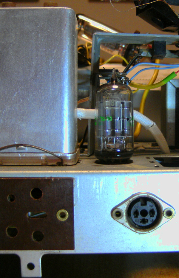 Ein paar Bilder vom Chassis des Tonmeisters. Das LS Poti musste leider ersetzt werden. Das Netzteil wurde etwas Sicherer gemacht. Netzteil Elko erneuert, jetzt mit Schellenbefestigung. Wer ganz genau hinsiehtsieht eine kleine EABC 80. Ist aber keine Hab mal die günstigere 6T8A eingesetzt. Die ist genauso gut.