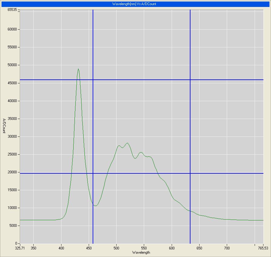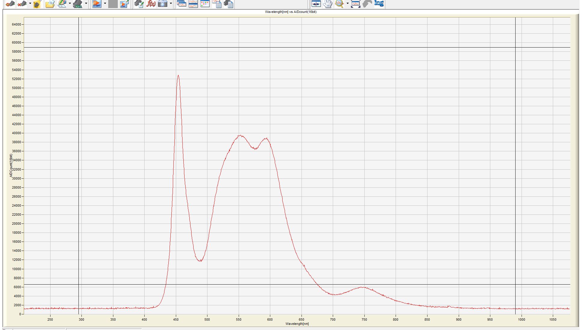 ich habe jetzt einmal drei Taschenlampen verglichen. Zu meinem Erstaunen wird bei einer der Lampen kein Takt verwendet. Für die Messungen habe ich ein Spektrometer, sowie einen Photomultiplier (auch SEV genannt) verwendet. Bei der 3Watt LED kann man noch einen deutlichen Anstieg im nahen IR-Bereich erkennen. Das ist eigentlich verschwendete Energie, da das menschliche Auge in diesem Bereich ja nichts mehr sehen kann. Damit keine Missverständnisse entstehen, die Amplituden der Messungen sind keine direkte Referenz zur Intensität der LEDs, da ich die -HV des PMTs und auch die Integrationszeit des Spektrometers so angepasst habe, dass der Dynamikbereich 'gut' genutzt wird.