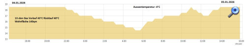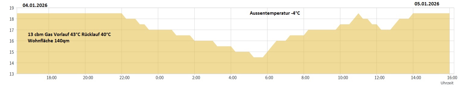 wer meint, ein BaFa-gefördertes Fertighaus mit Dachisolierung und Dreifachverglasung würde nicht so schnell auskühlen, der sollte sich folgende Kurve ansehen: