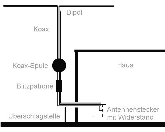 Hallo Volker, die Mantelwellen-Sperr-Wicklung des Koax-Kabels oben an der Antenne reicht nicht zur Energievernichtung aus, da das gesamte Kabel danach bis zum Haus ebenfalls Überspannung einfangen kann. Ich würde direkt vorm Haus eine weitere Aufwicklung anbringen.