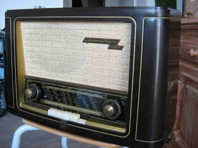 Fast genauso sah es bei uns in der guten alten Stube aus. Nur einen Fernseher konnten wir uns erst in den 60 Jahren leisten. Fury+Lassie durften wir in mit dem Gastwirtensohn im Nebenzimmer der Wirtschaft bei Bluna und Salzstangen geniessen. Aber danach gab es bei Muttern für uns Kinder Malzkaffee und Kuchen, der Vater qualmte seine Sonntagszigarre und lauschte den Sportnachrichten. Am meisten interessierten ihn die Fußballspiele der Berliner Vereine. Er hatte einige Jahre in Berlin gelebt und dort gearbeitet. Ich für meine Person saß mehr hinter dem Radio als davor. Der Grund dafür waren die herrlich klimmenden Röhren. Mit 3-4 Jahren glaubte ich fest daran, dass in den leuchtenden Röhren die Musiker sitzen und musizieren. Fasziniert war ich auch vom Leuchten des magischen Auges. Aber das sah man ja von vorne. Gedreht und gekurbelt wurde, alle möglichen Wellenlängen ausprobiert und andächtig in den Äther gelauscht.