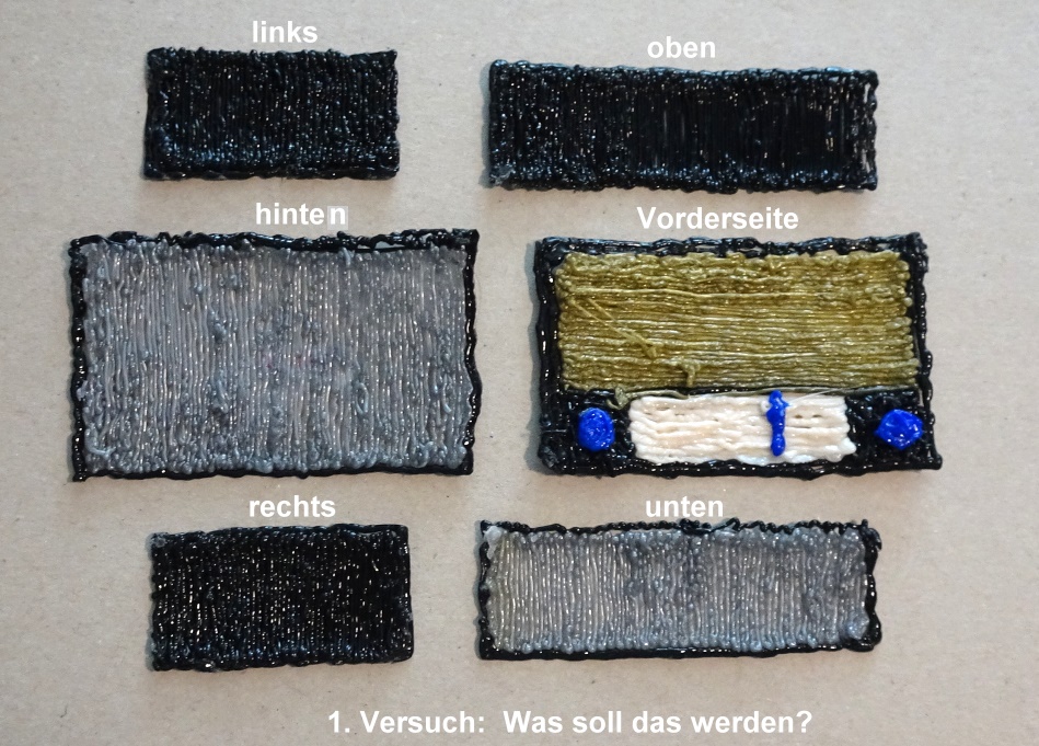 Hier der erste begonnene Versuch der Umsetzung, allerdings durch Materialmangel der Farbe Schwarz temporär gestoppt. Nachschub folgt, dann kann zusammen-gepappt werden.