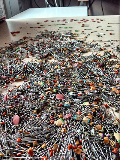 Ich habe gleich zugeschlagen, ich hatte überhaupt nicht darüber nachgedacht, wieviel Stück ein knappes Kilo von diesen kleinen Teilen sind. Gut die Hälfte ist immer noch nicht sortiert, als ich die fehlenden Werte zusammen hatte, lies die Lust weiter zu sortieren gewaltig nach.