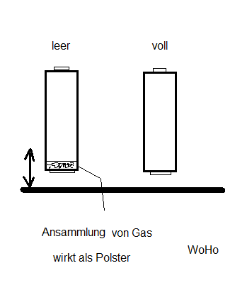Demnach ist es genau umgekehrt wie ich es zunächst sah: Die geleeartige Masse bei einer vollen Batterie dient beim Fallenlassen als Dämpfer, fängt also den Aufprall ab. Daher kein Springen!