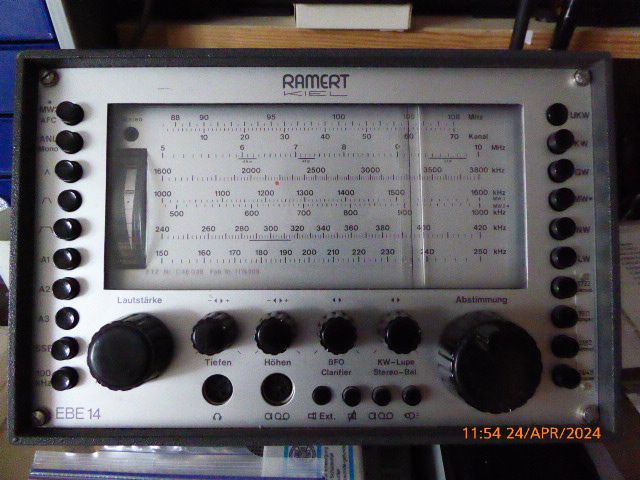 an der Mini Whipe Antenne sehr guten Empfang . Die Teilweise Amateurfunk KW Frequenzen sind auch in SSB zu empfangen. Es gibt ein Video, in dem eine Reparatur und viele Technik Details angegeben werden. Einfach nach Ramert EBE 14 Googeln.