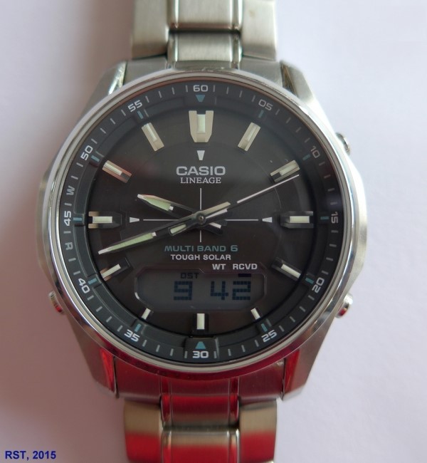 Das gilt auch für meine weitere etwas jüngere DCF-kontrollierte Armbanduhr von Casio. Das ist sogar eine ECO-Drive-Uhr mit Solar-Akku.