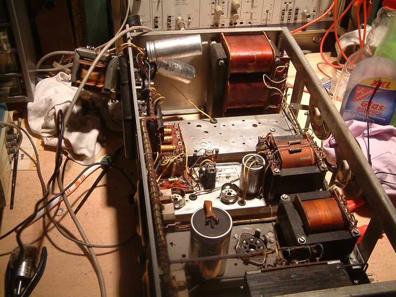 Die EL34 wird erneuert. Die beiden ECC81 sind gut. Restauration läuft
