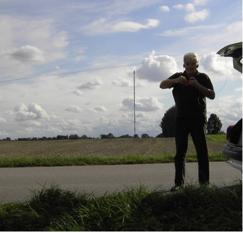 Die Passanten, die mit Hund und, oder Fahrrad des Weges kamen, sprachen mich alle an. Jedoch keiner wusste etwas von einem Mittelwellensender, der seit über 80 Jahren, vor ihrer Haustür, seinen Dienst tat. Nachdem ich Interessierten den Kopfhörer übergab, konnten sie mein Tun erst recht nicht verstehen. Radio kann man auch einfacher hören. Auch muss man sich nicht vor den vermeintlichen Sender stellen. Ohne Batteriestrom Radio hören? Warum, Batterien kann man überall kaufen. Ich war bemüht, nicht als Entflohener rüber zu kommen. Ein Abschweifen des Gespräches über den mitgeführten 23 Jahre alter Ford Fiesta, ein Restaurationsprojekt, konnte die Normalität meiner Person auch nicht untermauern. Einer ist meiner Bitte nachgekommen und hat mich photographiert. Siehe oben.