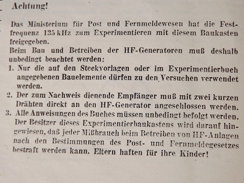 ich hatte den auch zum Geburtstag geschenkt bekommen. Bei mir war es der zweite Kasten. Mit dem ersten konnte man einfache elektrische Experimente (mit Motor, Bimetall usw.) durchführen. Den Langwellensender habe ich auch gebaut und mit einem sehr alten Röhrensuper empfangen - hat viel Spaß gemacht und mich weitergebildet. Qualität von Bausatz und Begleitheft sind für mich uneingeholt.