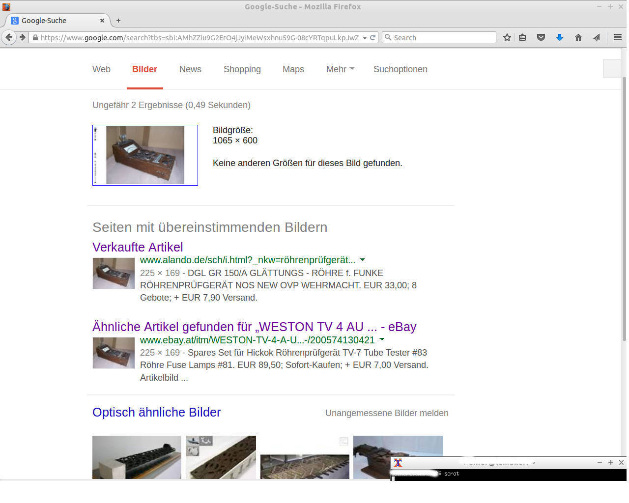 vielleicht machst Du aber doch ein Foto des Geräts, auf dem man von vorn die Bedienelemente gut erkennen kann. Dann kann man u.u. weitere Hinweise geben. ich gehe nach wie vor von einem Eigenbau aus. Die Stahlröhrenfassungen sind kein Beleg für ein Baujahr vor 1945, weil man ein Prüfgerät mit Vorkriegs-Fassungen auch noch 1955 bauen kann.