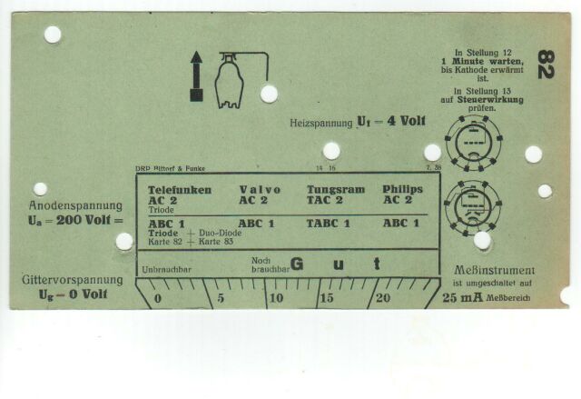 Da wurde mit Ua 200V bei Ug 0V geprüft, was über der zulässigen Anodenverlustleistung der AC2 und deren Nebentypen liegt. Später sah man das auch und hatte die Karten korrigiert, d.h. Ua = 100V, wie bei Dir.
