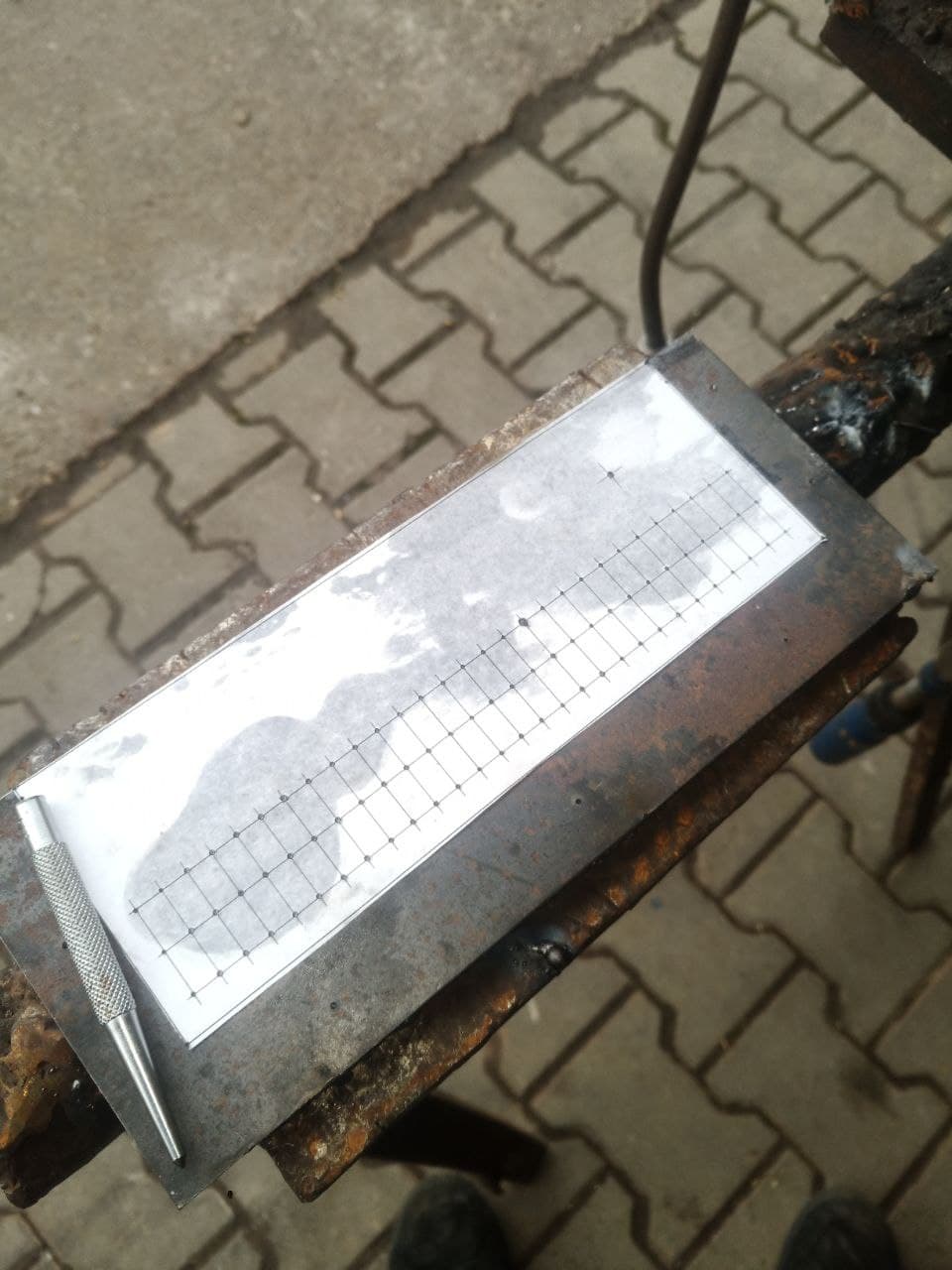 Fertig gerieben und Stahlplatte ist getrennt und 1.5mm Blech wurde eingelegt und sorgfältig angerissen und gebohrt (oh es passt prima)