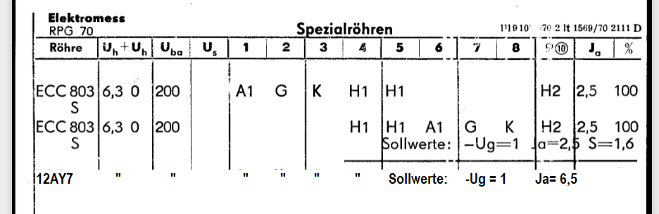 super. Habe Ja auf 10 und % auf 70 gestellt, Uba auf 200, den Rest wie bei ECC803S, und das Ergebnis war, wie erwartet: die Röhren geben ziemlich genau 100% an, sind also, obwohl alt, wie neu.